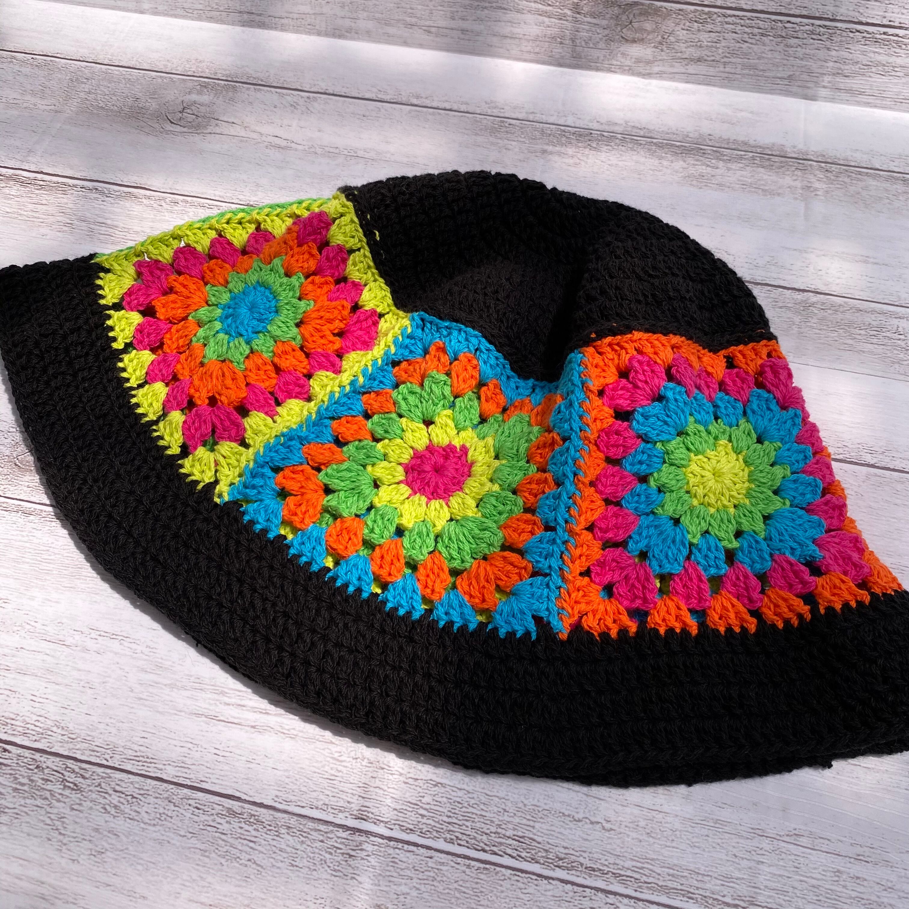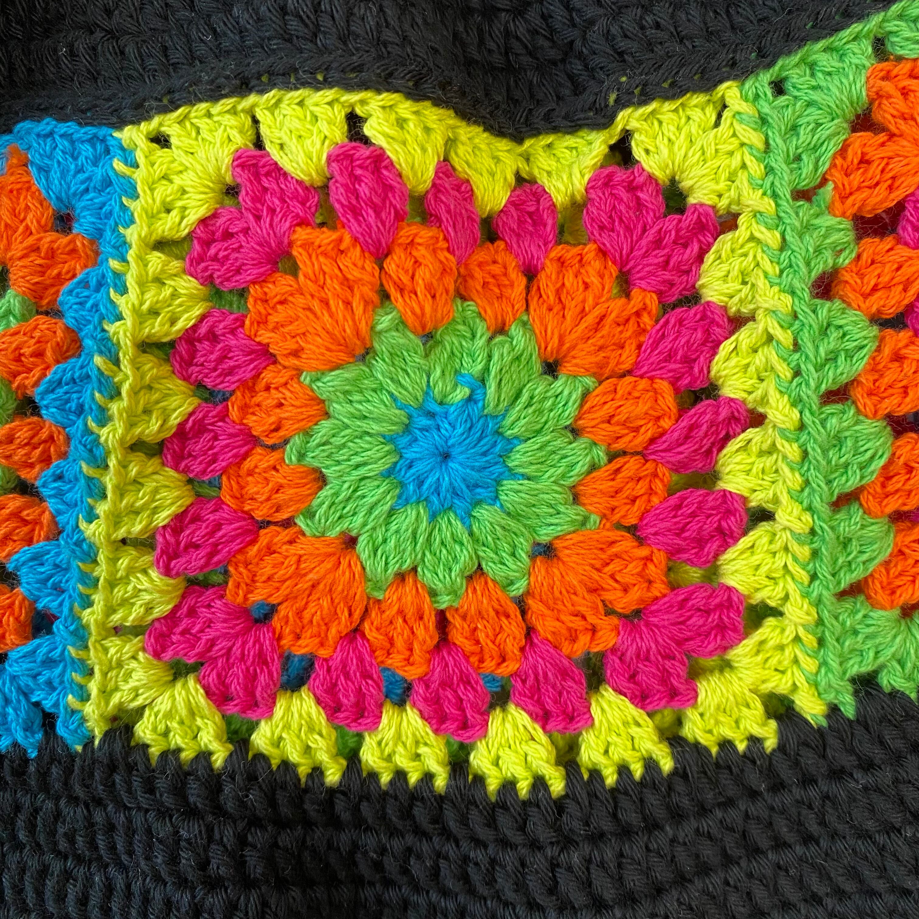 #グラニースクエア #クロシェ #編み物 #かぎ針 #毛糸 #ハンドメイド #手作り #一点物 #かぎ針編み #ネオンカラー #原色 #蛍光 #CROCHETHAT #かぎ編み #ニットハット