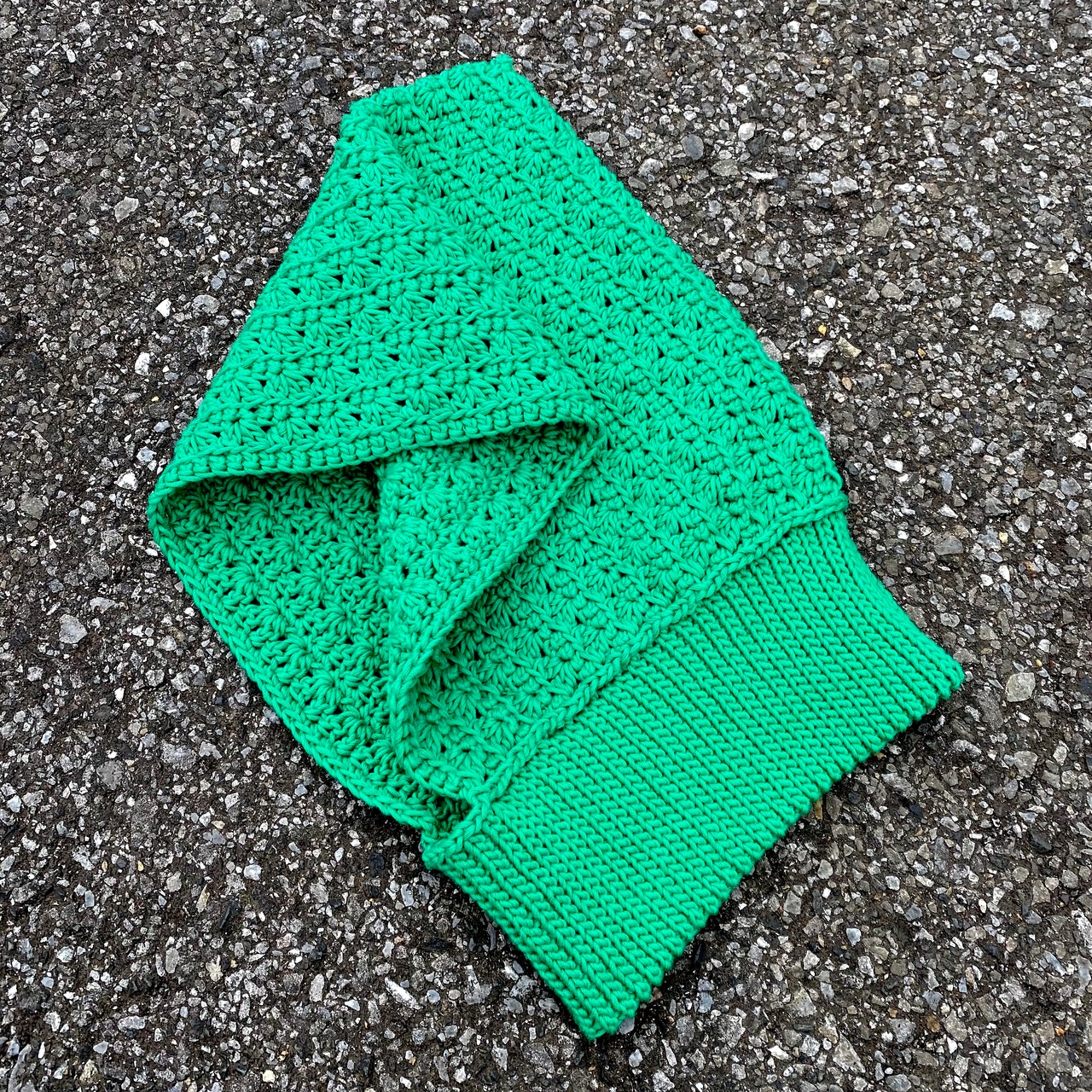 太めの毛糸のためしっかりとした編み地です。
