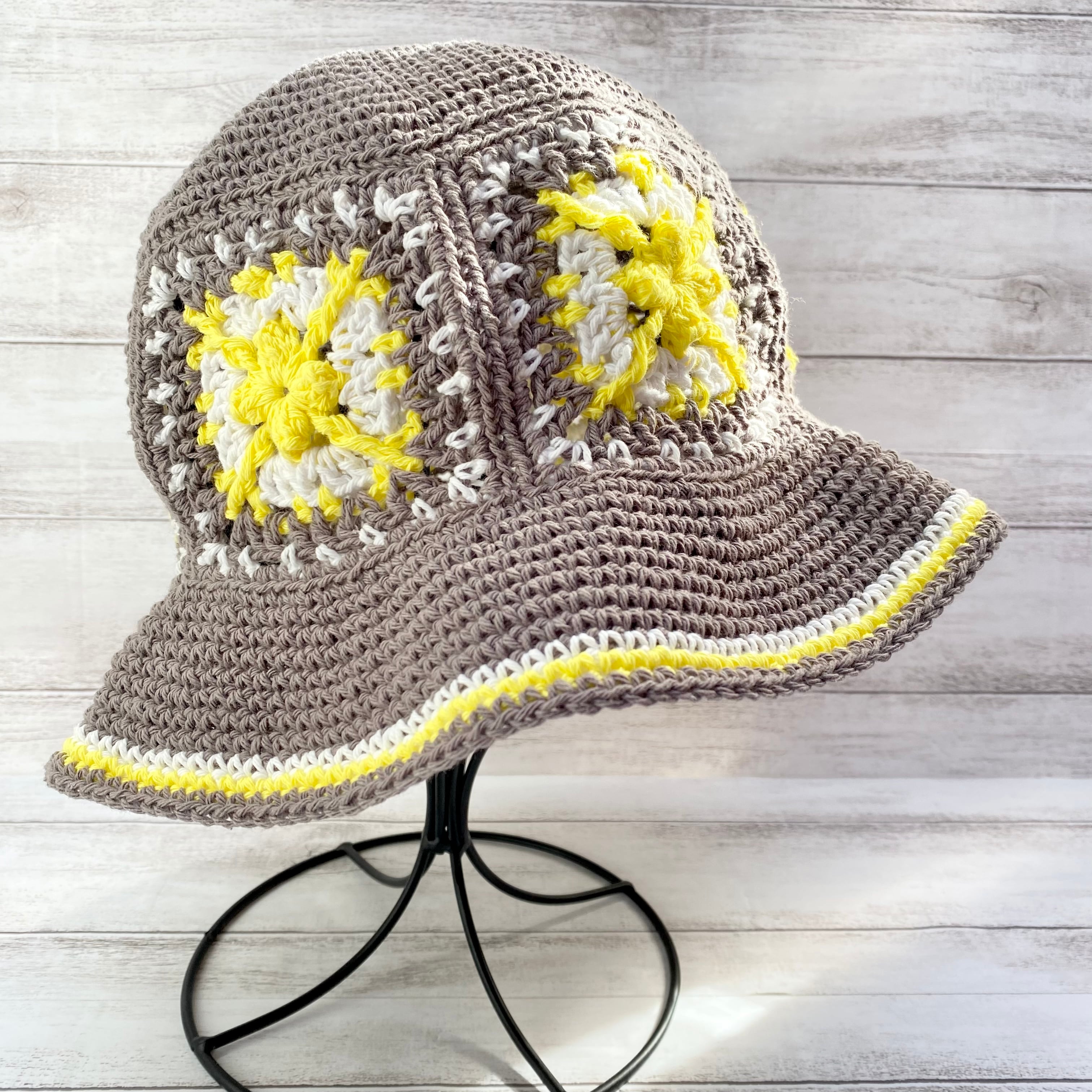 #グラニースクエア #クロシェ #編み物 #かぎ針 #毛糸 #ハンドメイド #手作り #一点物 #かぎ針編み #手編み #CROCHETHAT #バケットハット #帽子 #ニット帽 #モチーフ編み #ハット #ニットハット #チューリップハット #クロシェットハット #polepole31