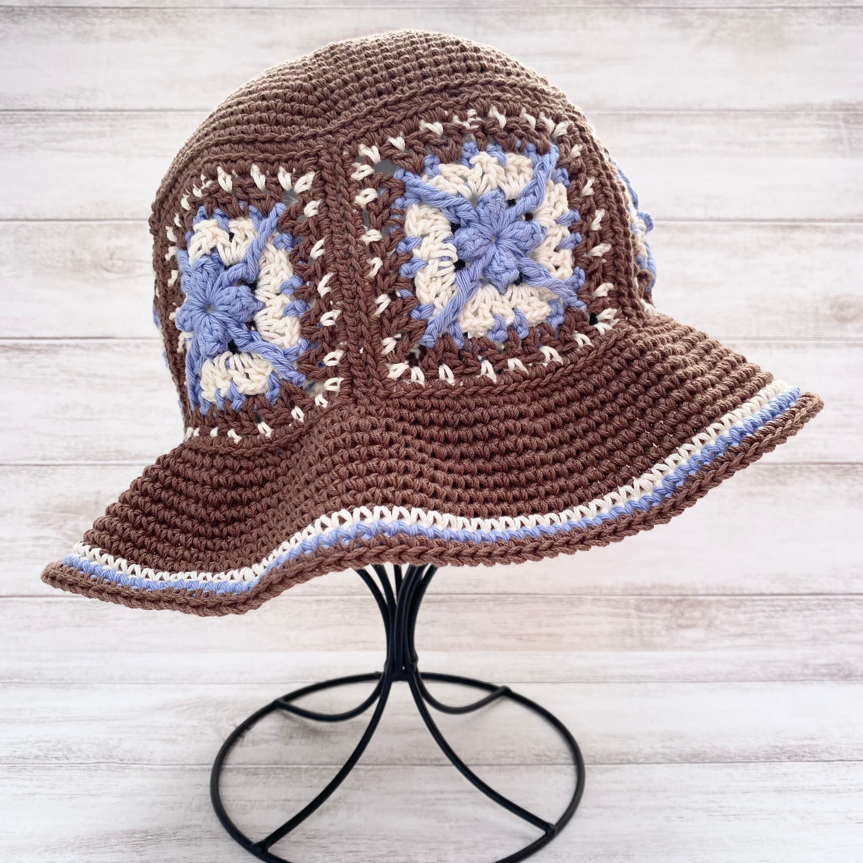 【NO.3122006】ハンドメイド グラニースクエア ハット クロシェ編み帽子 ブラウン