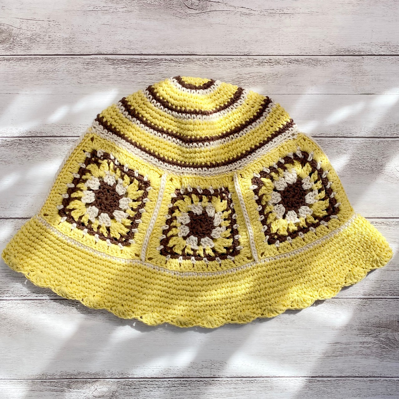 #グラニースクエア #クロシェ #編み物 #かぎ針 #毛糸 #ハンドメイド #手作り #一点物 #かぎ針編み #手編み #CROCHETHAT #バケットハット #帽子 #ニット帽 #モチーフ編み #ハット #ニットハット #チューリップハット #クロシェットハット #polepole31 #クロシェ編み #クロシェハット #グラニーハット #grannysquare
