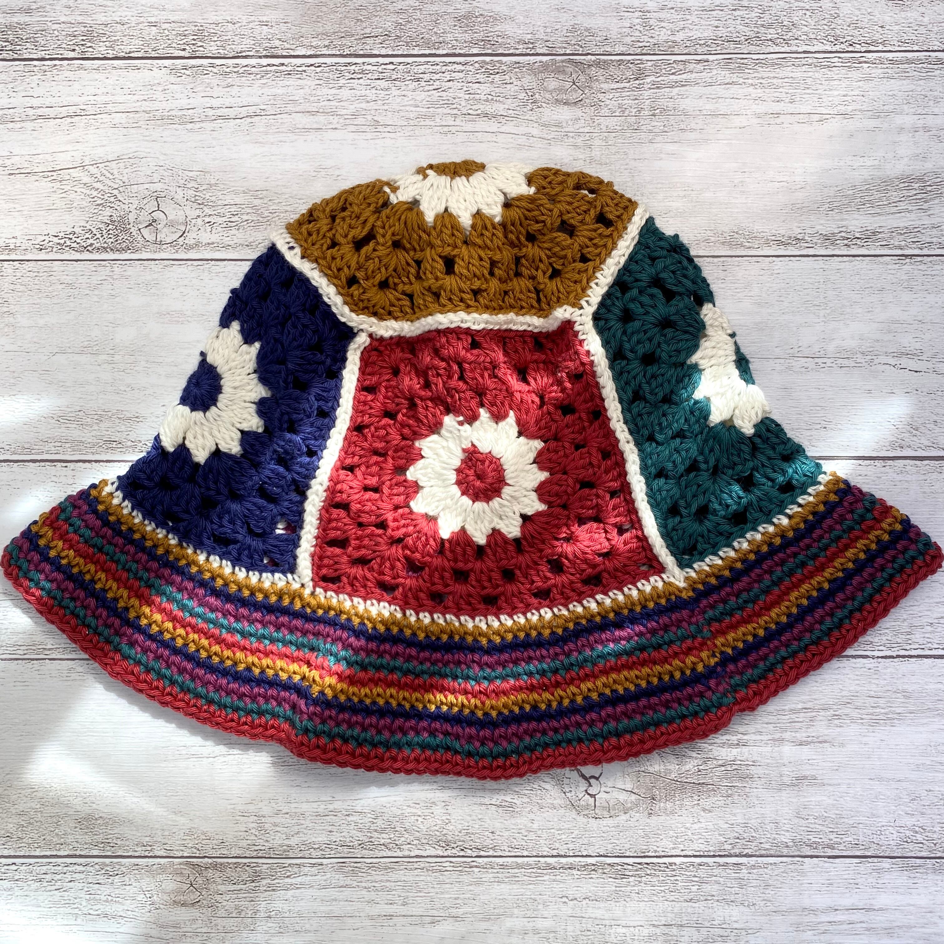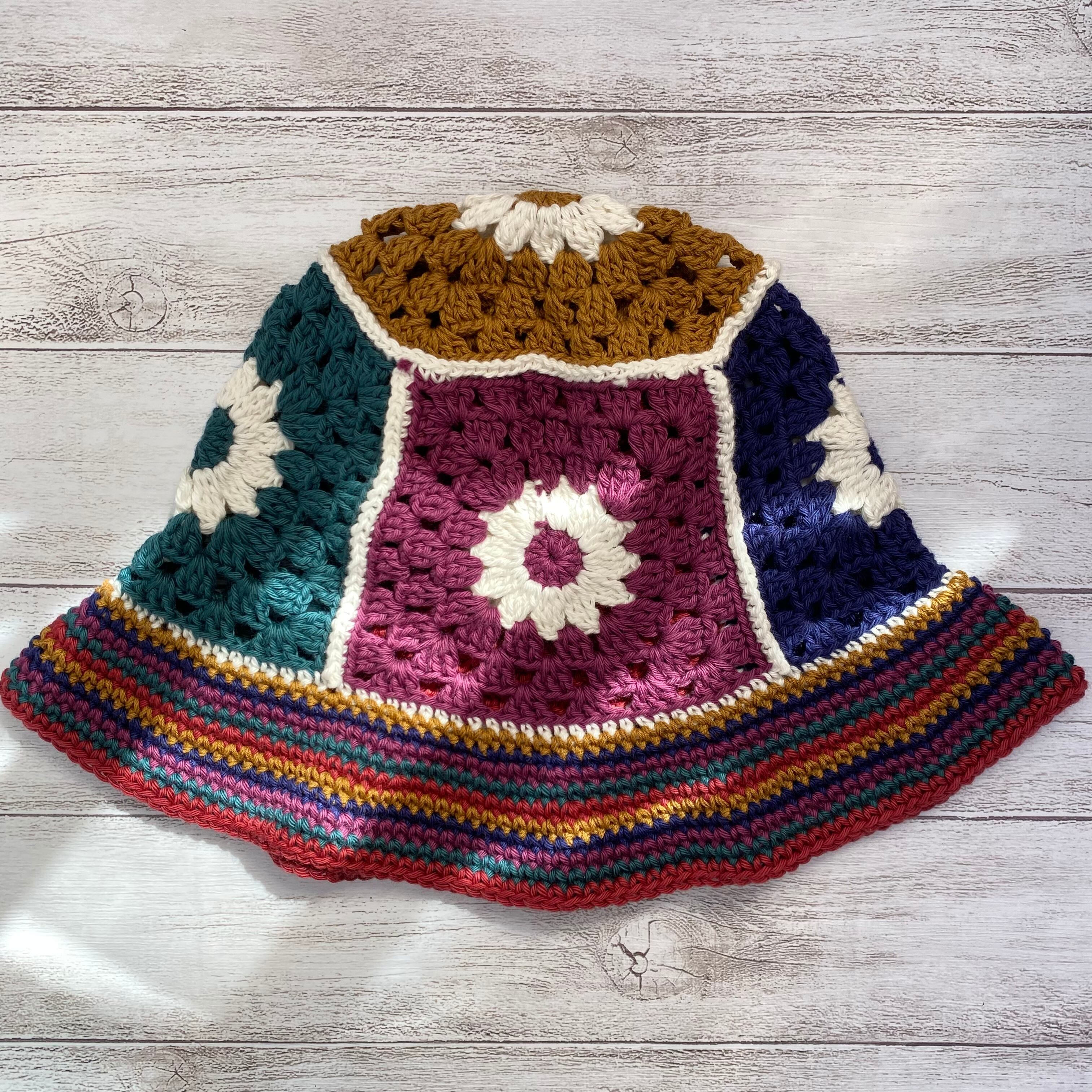 #グラニースクエア #クロシェ #編み物 #かぎ針 #毛糸 #ハンドメイド #手作り #一点物 #かぎ針編み #手編み #CROCHETHAT #バケットハット #帽子 #ニット帽 #モチーフ編み #ハット #ニットハット #チューリップハット #クロシェットハット #polepole31 #クロシェ編み #クロシェハット #グラニーハット #grannysquare