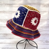 【NO.3122012】ハンドメイド クロシェハット グラニースクエア ハット クロシェ編み帽子