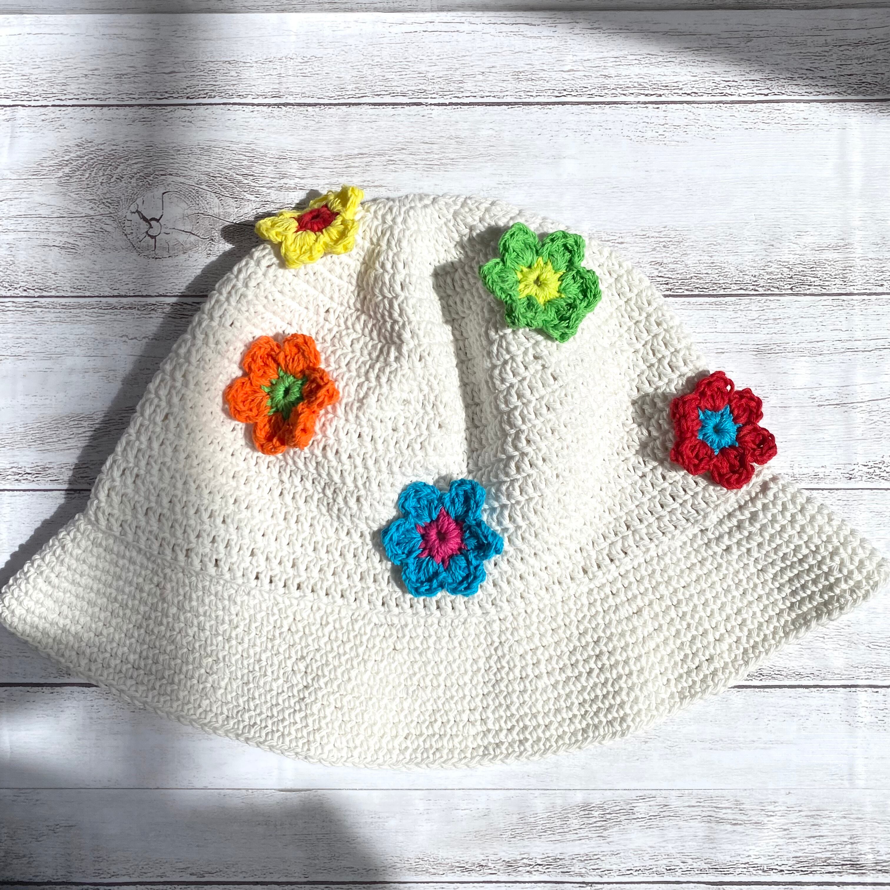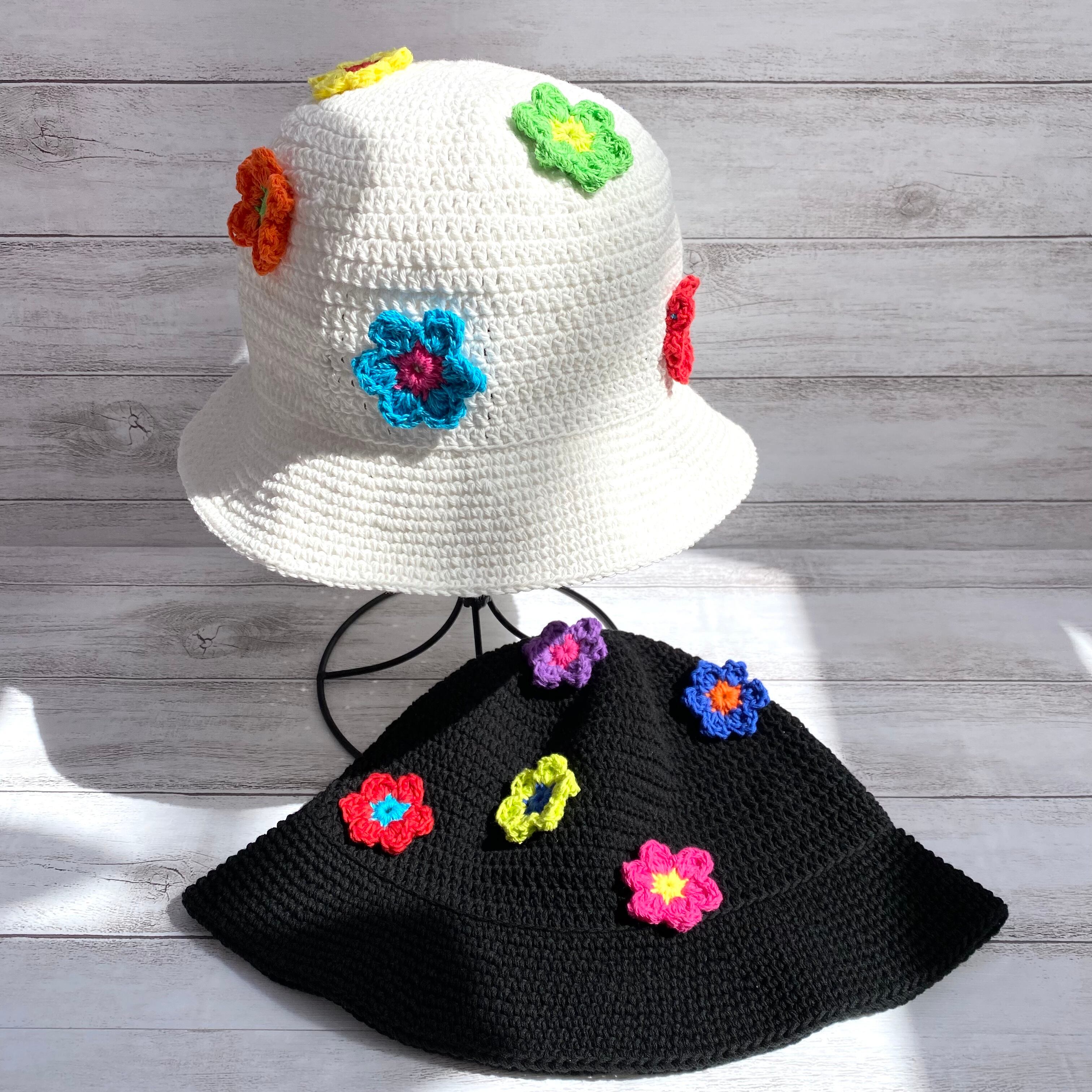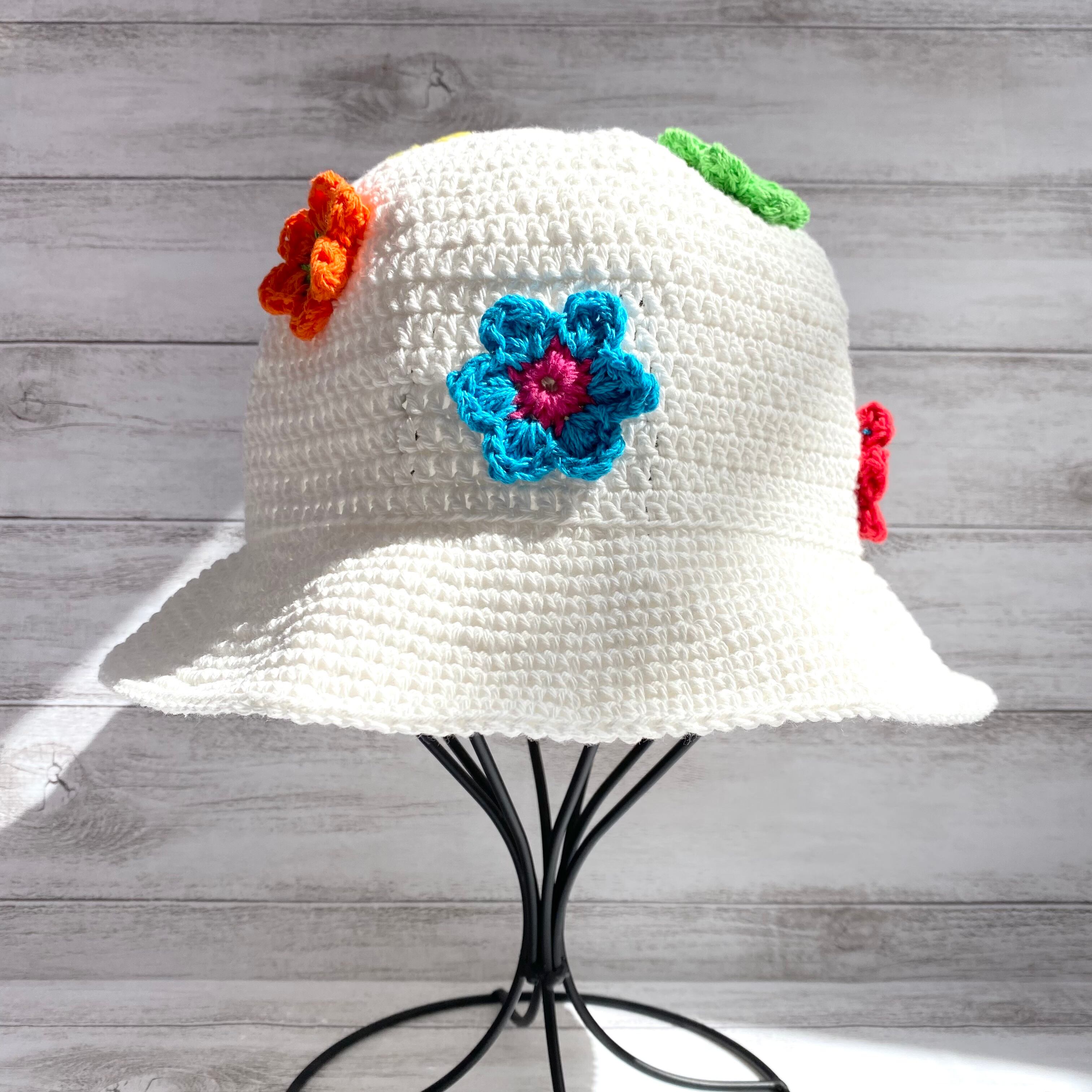 【NO.3122014】ハンドメイド 立体お花付き バケットハット クロシェ編み帽子