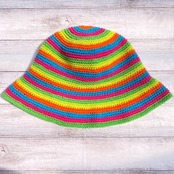 【NO.3122021】ハンドメイド ボーダー クロシェハット ビビットカラー バケットハット クロシェ編み帽子 ニットハット