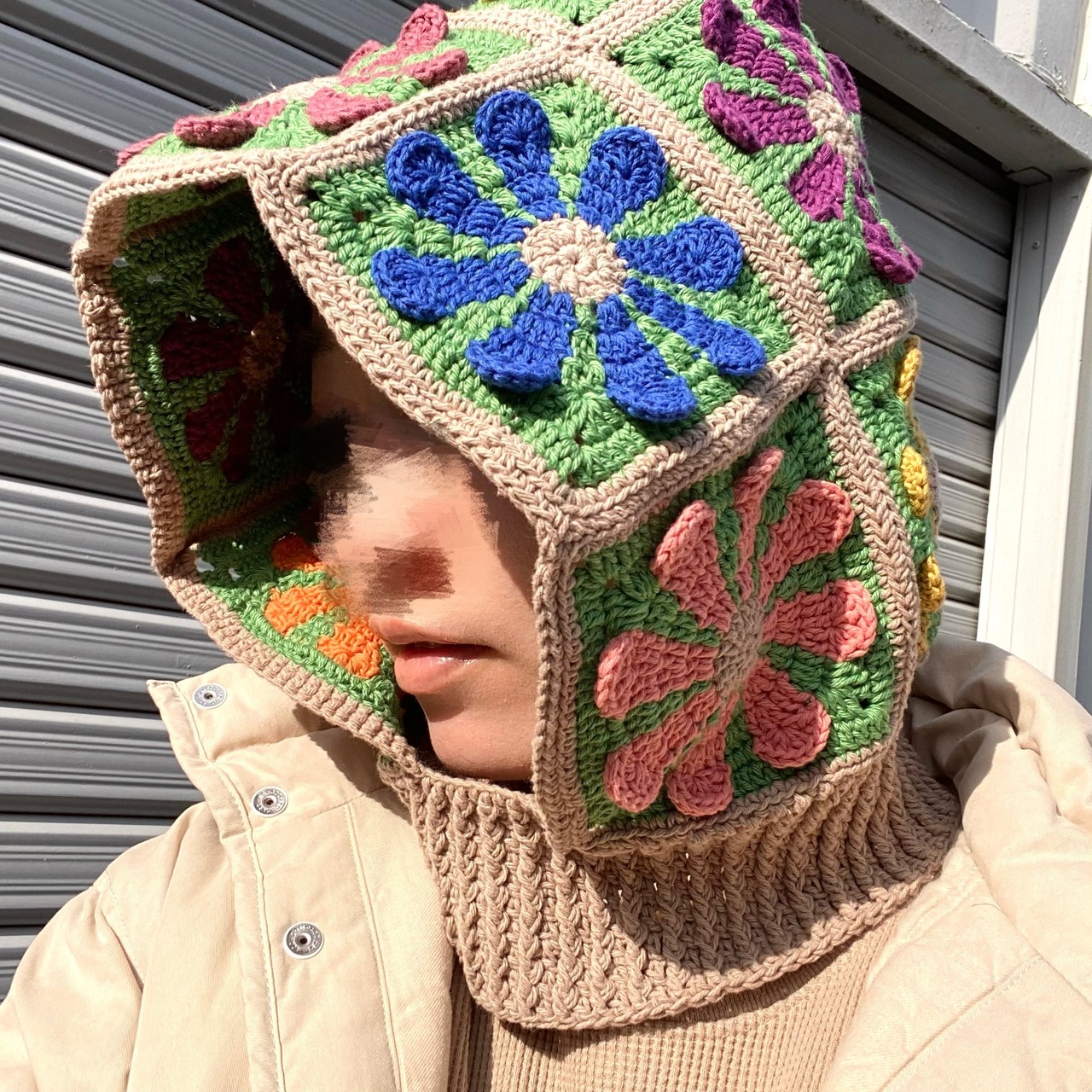 #ニットフード #クロシェ #編み物 #かぎ針 #ハンドメイド #手作り #一点物 #かぎ針編み #バラクラバ #ニット #ニットフードウォーマー #帽子 #ハット #韓国ファッション #韓国